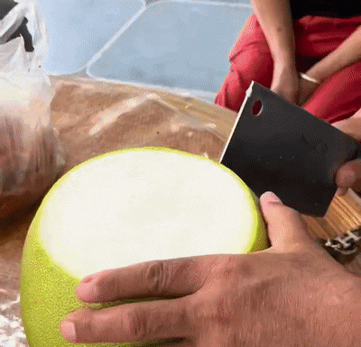 剥柚子看着是体力活,其实也是有技巧的。先用刀划开,然后用手剥,就像剥橘子皮一样简单!